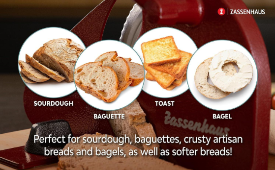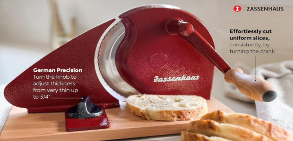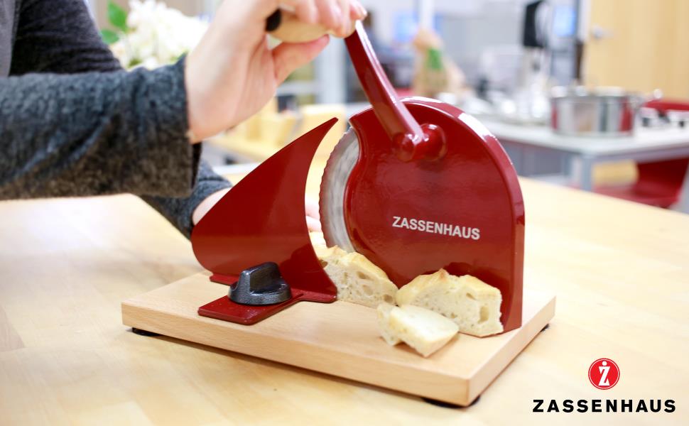 Zassenhaus Manual Bread Slicer, Classic Hand Crank Home Bread Slicer (Red)